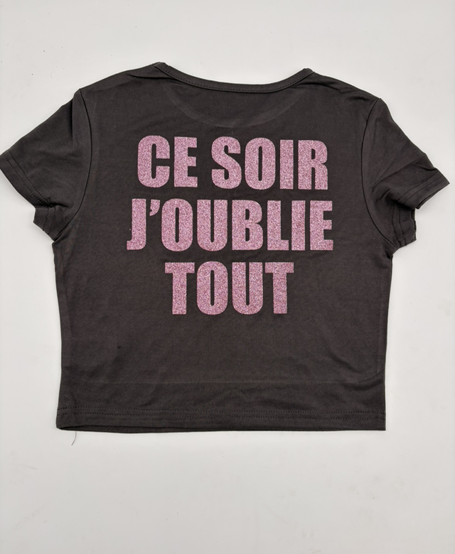 Crop top fit gris et rose a paillettes CE SOIR J’OUBLIE TOUT