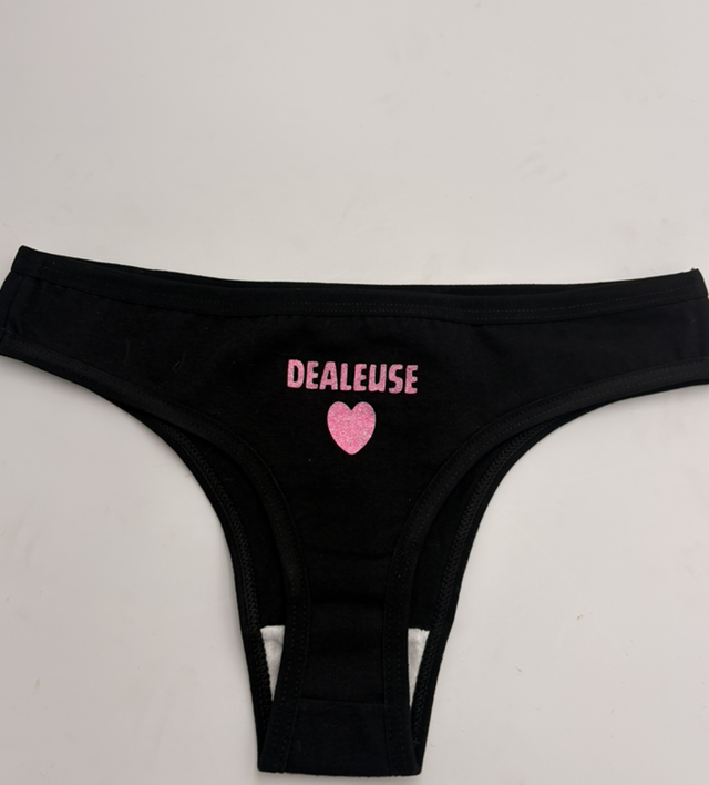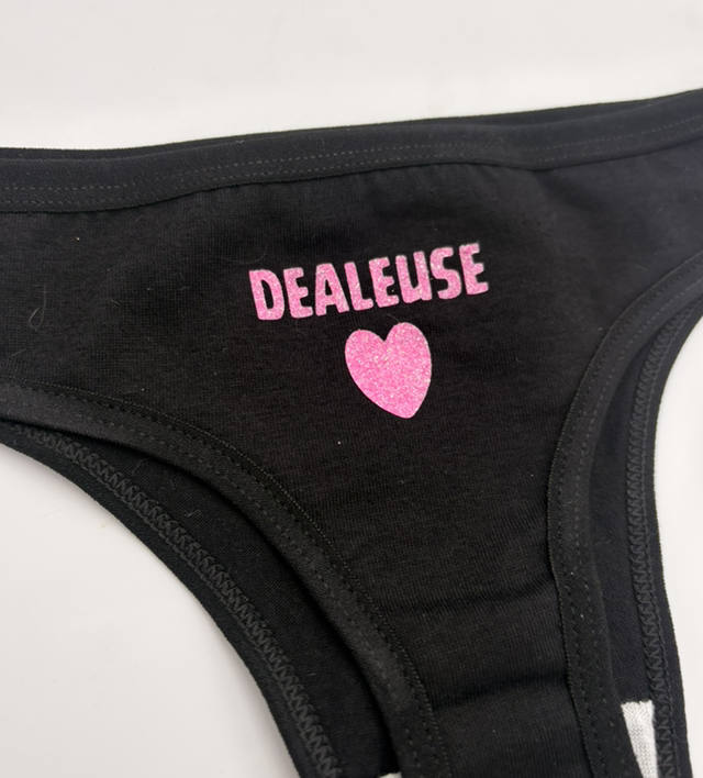 Tanga noir JuL signe phospho rose